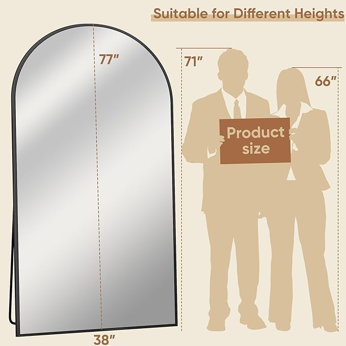 - 🪞【MULTIFUNCTIONAL】The full-length mirror can be tilted against the wall or installed vertically on it. You can also unfold the U-shaped bracket and position the arched mirror anywhere.