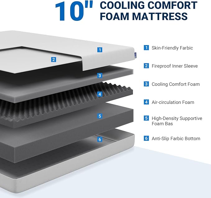 - FRESH SLEEP NIGHT: Avenco 10" twin memory foam mattress features a breathable and light fabric to enhance airflow and minimize heat retention. 2-layer comfort foam effectively eliminate odors and pulls moisture to keep the mattress fresh. Our twin size foam mattress keeps you at the optimal body temperature for refresh sleep.