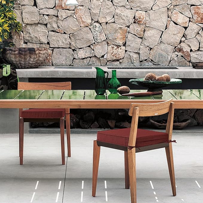 Sunbrella Square Corner Seat Cushions, 19" x 19" x 3", Set of 4, Indoor Outdoor Water Repellent Universal Chair Pads with Ties for Patio Furniture, Garden Dining Chairs, Spectrum Brick