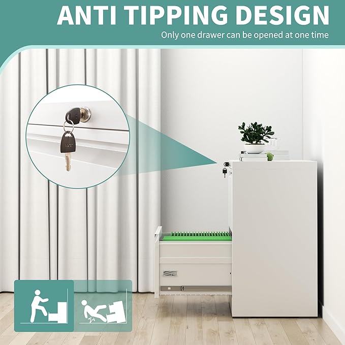 - 【Unique Design】:The upgraded lock system possesses 1 lock & 2 keys,Built-in interlock system secures all drawers to make sure safe file, with folding key lock convenient to carry. The small white file cabinet with all drawers interlocking mechanism design, it will prevent tipping.