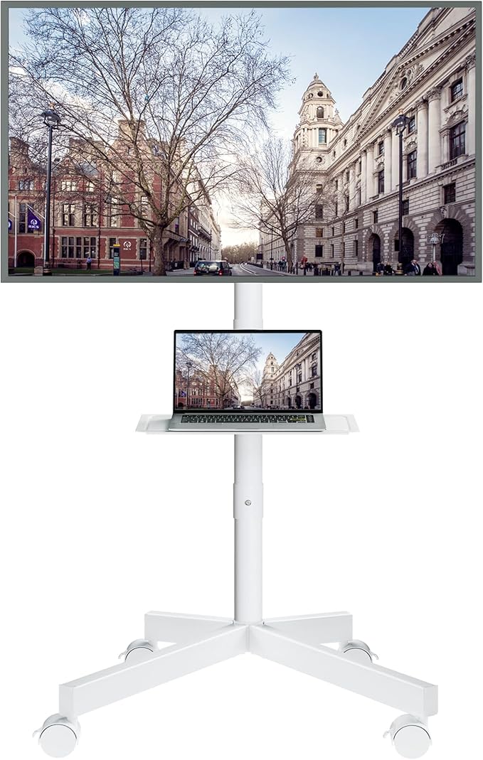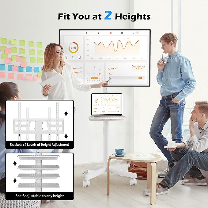 - STURDY AND SECURE TV STAND - Equipped with four durable 360° locking wheels, this rolling TV stand provides easy mobility while ensuring your TV stays securely in place, giving you peace of mind whether in a home or office settin
