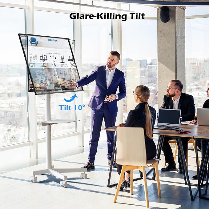 - ENHANCED TV STAND VIEWING EXPERIENCE - Featuring a tilt function, this TV stand allows you to adjust the screen up to 10° for a glare-free, comfortable viewing angle, whether you're watching your favorite shows or delivering presentations