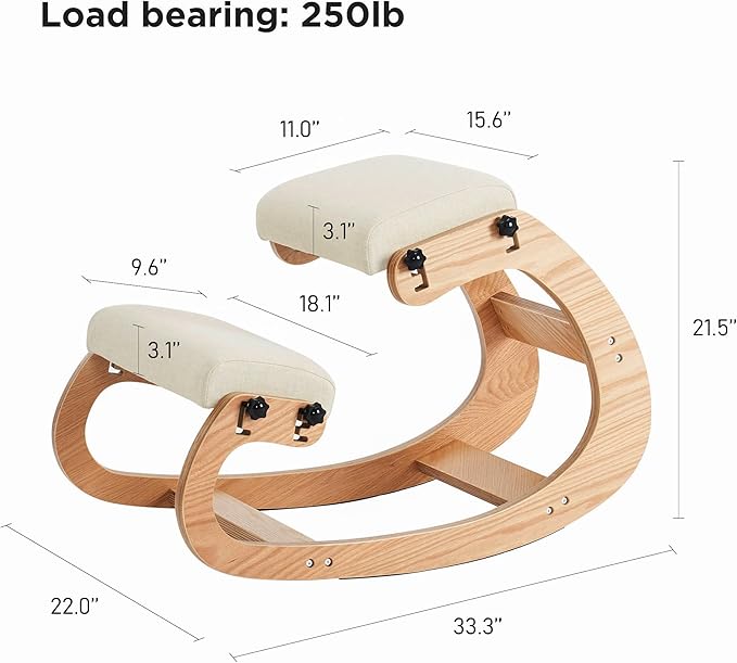 Ergonomic Kneeling Chair,Adjustable Rocking Knee Chair for Home Office,Wooden Office Chair for Back Pain Relief, Beige