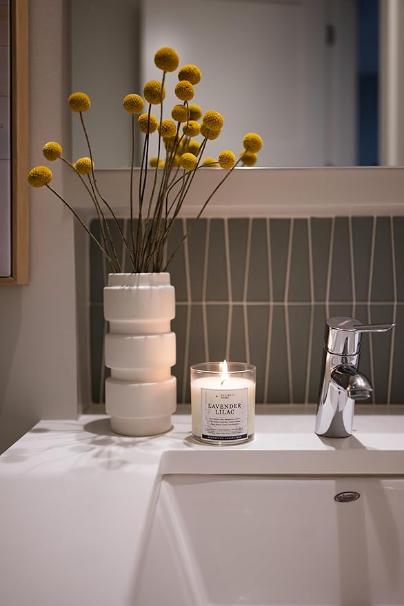 PERIPETI Home Lavender + Lilac Scented Candle - Classic Wick, 8.5oz Natural Soy Wax for Soothing Aromatherapy - Long-Lasting Relaxing Fragrance for Home or Spa