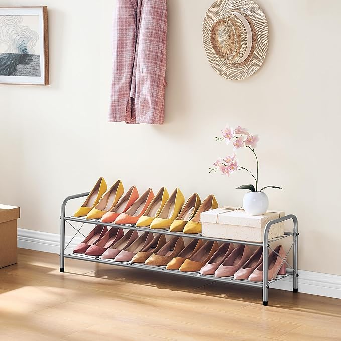 Hoctieon 2 Tier Shoe Rack for Closet, Durable Mesh Style Shoe Rack, Entryway Shoe Shelf, Shoe Storage Organizer for Hallway, Bedroom, Living Room, Wardrobe, Grey