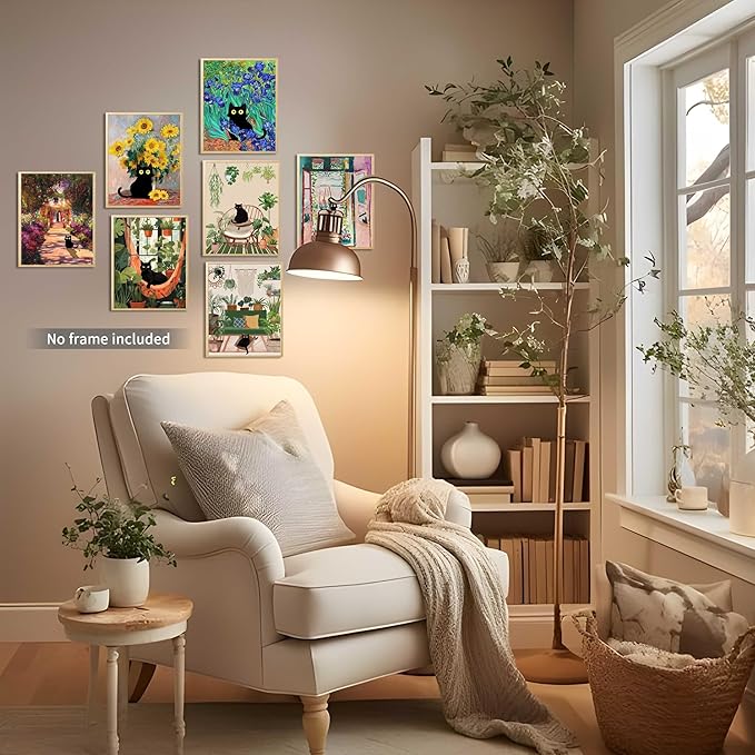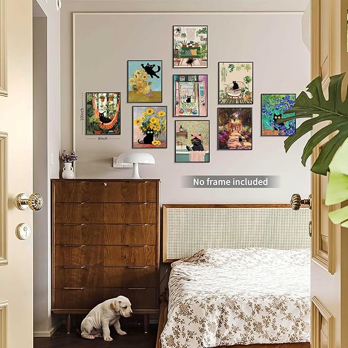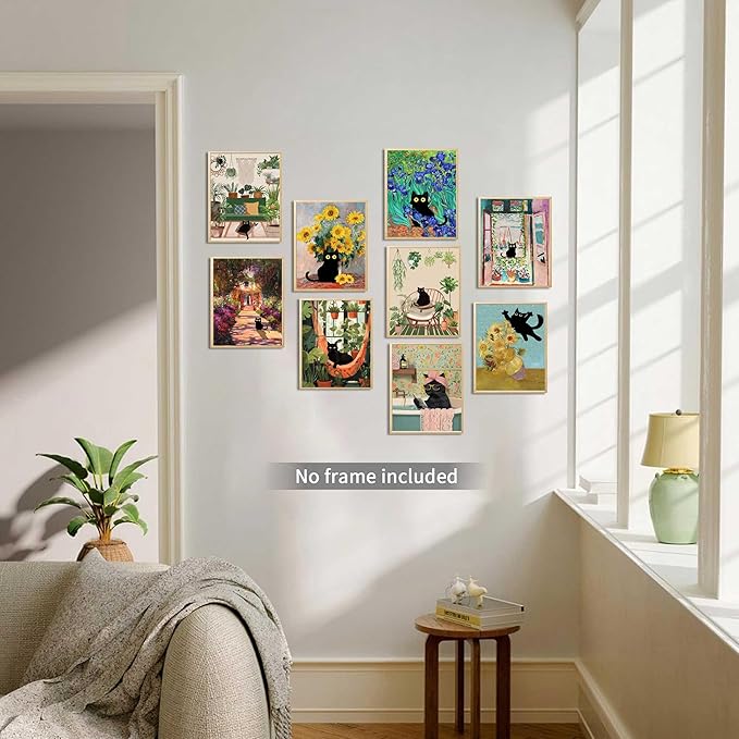- 【Customizable Unframed Art Prints】Designed for flexibility, each print in this set arrives unframed, allowing you to choose frames that suit your unique style or to hang them as-is for a more casual look. Arrange them as a cohesive gallery wall or spread them across your home for a coordinated theme. This versatile display option makes these prints ideal for cat decor, vintage prints, and aesthetic wall art.