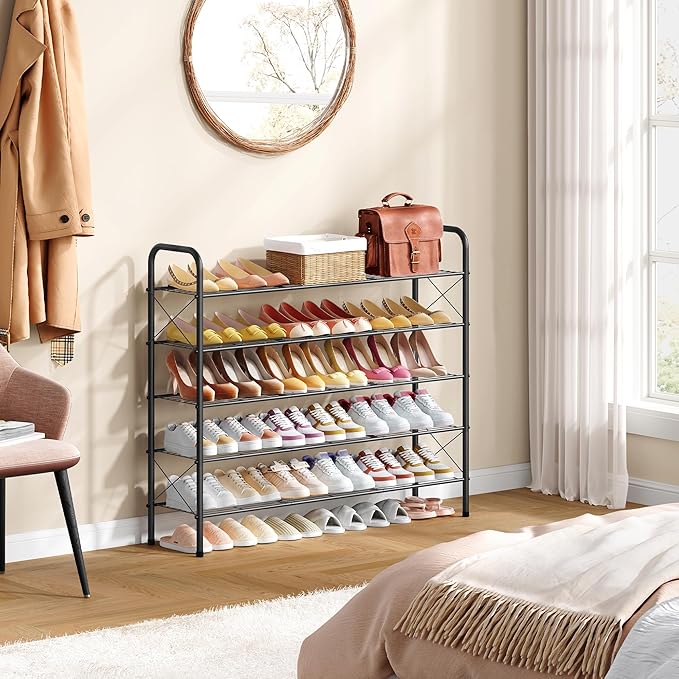 Hoctieon 5 Tier Mesh Style Shoe Rack, Entryway Shoe Shelf, Shoe Storage Organizer, Shoe Rack for Closet, Space Save for Bathroom, Garage, Hallway, Bedroom, Living Room, Black