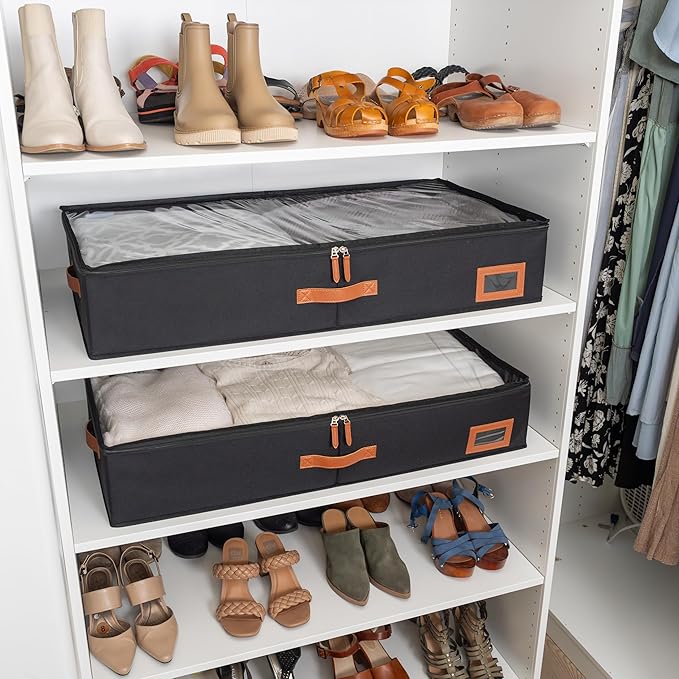 OrganiHaus Under Bed Storage Containers, Bedroom Storage and Organization Bins, Clothes Organizer for Closet with Clear Cover and Reinforced Handles - Set of 2 33x17x6 inches Black