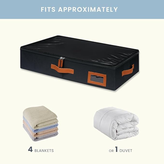 - Clear PVC Lid with Label Pockets: The transparent PVC cover allows for quick content identification, eliminating the need to open the underbed storage containers. Additionally, two large label pockets provide extra organization, making these under bed organizers ideal for sorting clothes, shoes, and accessories.