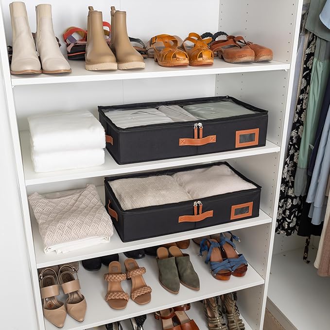 OrganiHaus Under Bed Storage Containers, Bedroom Storage and Organization Bins, Clothes Organizer for Closet with Clear Cover and Reinforced Handles - Set of 2 23.5x12.5x5 inches Black