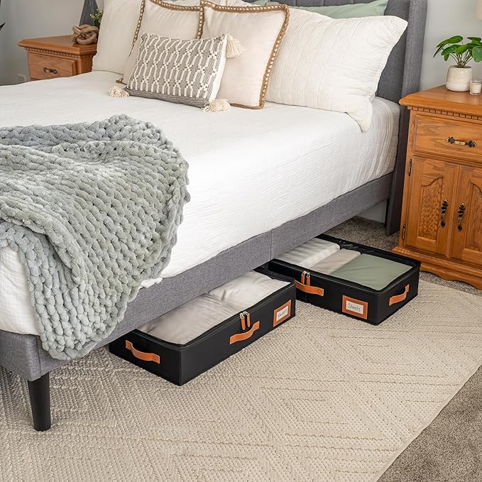 - Reinforced Thick Cardboard for Stability: Unlike flimsy alternatives, our under the bed storage bins feature extra-thick cardboard on all sides and the bottom, helping them maintain shape even under heavy loads. These under bed organizers provide a reliable and sturdy solution for long-term use and heavy-duty storage needs.