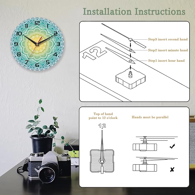 - Silent Non-Ticking: Enjoy a peaceful environment with our completely silent wall clock.Its non-ticking mechanism ensures no distracting noise, making it perfect for reading, working, meditating, or sleeping