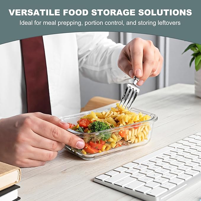 - AIRTIGHT SEAL: Each glass storage container comes with a BPA-free plastic lid featuring a silicone ring that provides a leak-proof seal. This prevents spills and keeps food fresh longer, ideal for carrying meals to work, picnics, or the gym. The snap locking lids are easy to use and wonβt break easily.