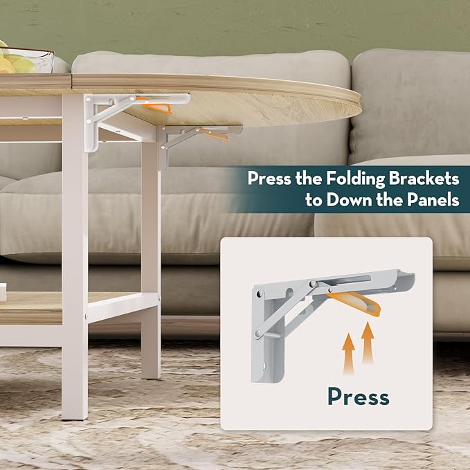 - [2-Tier Storage Shelf space] White oak coffee table features a second storage shelf space underneath the extendable tabletop, providing ample storage for your blankets, pillows, magazines, and any other items, meet your diverse storage needs