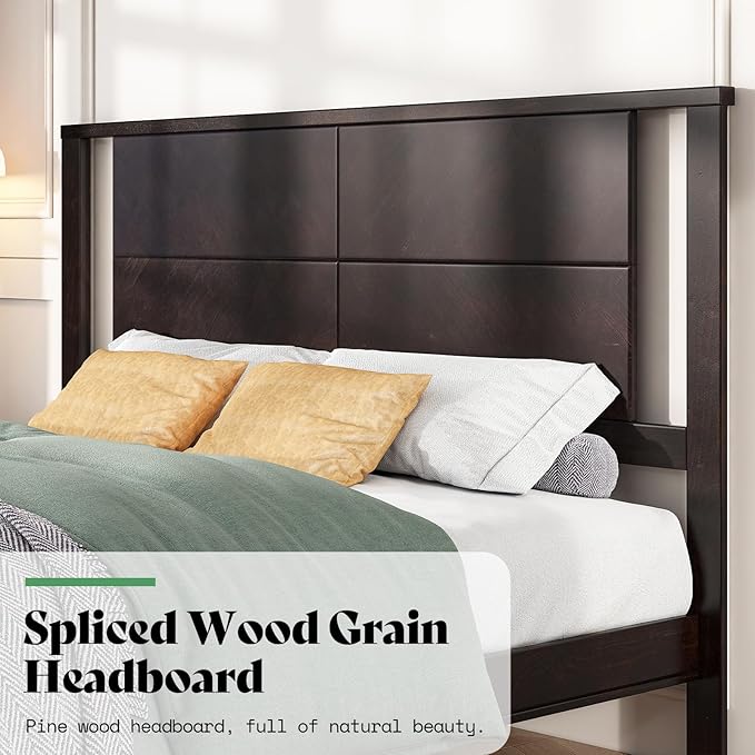- Sturdy & Durable: Wood slats provide full mattress support, a capacity of up to 1000 lbs. No box spring needed. The dark brown bed frame is constructed with an outer solid wood frame and an metal frame for added durability and stability.