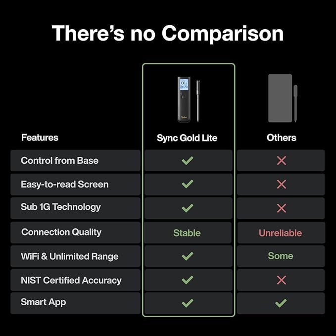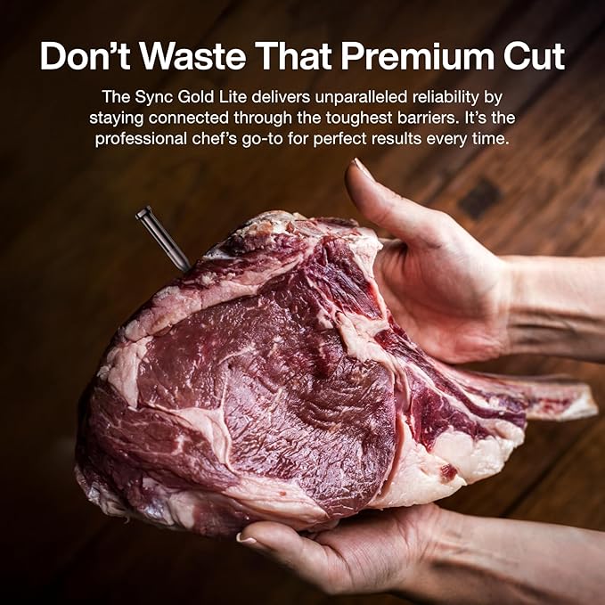 - 10x Signal: The SYNC Gold series wireless thermometers are the world's first to feature Sub-1 GHz technology, providing a signal ten times stronger than traditional wireless thermometers that rely on Bluetooth. Engineered to perform in any cooking scenario, this wireless thermometer seamlessly transmits through walls, kamado grills, smokers, and Dutch ovens, ensuring reliable monitoring even in the most challenging conditions