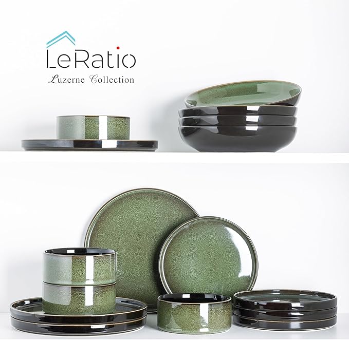 LERATIO Ceramic Dinnerware Sets for 4,Round Reactive Glaze Ceramic Plates and Bowls Set,Highly Chip and Crack Resistant | Dishwasher & Microwave Safe Dishes Set,Service for 4 (12pc)-Green
