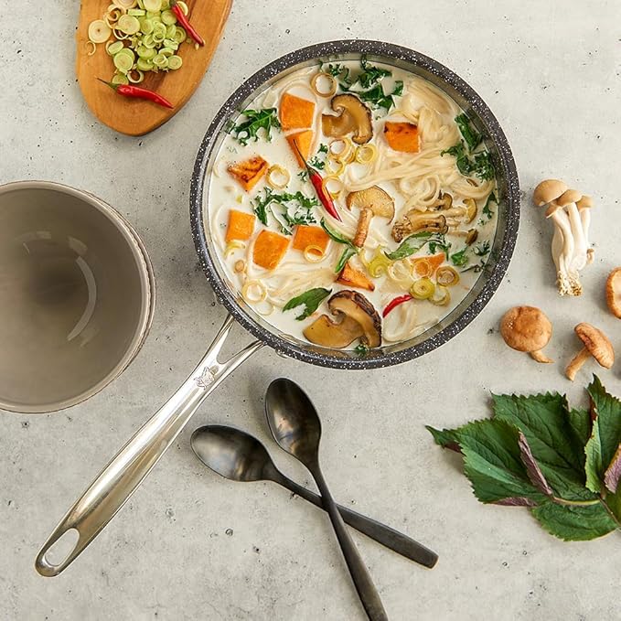Nordic Ware Basalt Formed Aluminum Sauce Pan, 3 Quart, Ceramic Coating