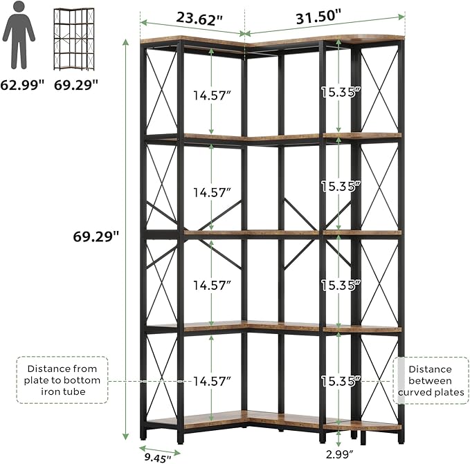 - 【Modern Industrial Style Corner Bookcase】: This stylish corner bookshelf combines practicality with personality; its frame is made from strong metal tubes with a sleek powder-coated finish, giving it an industrial look; it complements your other furniture and elevates the design of your home office