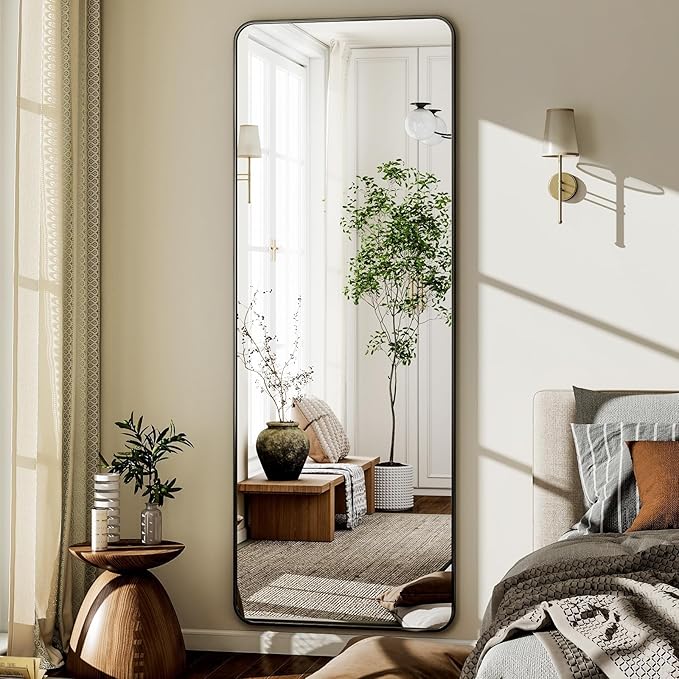 - Freestanding or Wall-Mounted: This round corner full length mirror offers multiple placement methods to suit your needs. Use it as a freestanding floor mirror with the included bracket, or hang it securely using the provided hooks and screws. Its lightweight design makes it easy to move and install, giving you the flexibility to place it in any room
