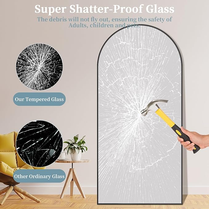 - HD-Imaging & Explosion-Proof Glass: Our upgraded arch mirror is made from 3mm high definition nano glass. What sets it apart is the special explosion-proof material used, which ensures that even if accidentally damaged, the glass will not scatter all over the floor, keeping adults, children, and pets safe. Provides crystal clear images with no distortion naturally.