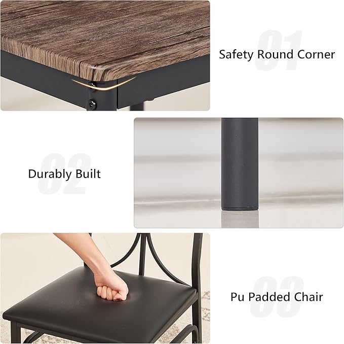 - 【Wide Range of Uses】Ideal for dinette, kitchen, dining room, and small apartment, this dining set seats up to 4 people with a rectangular table perfect for family style dinners, meals with friends, or even a double date.