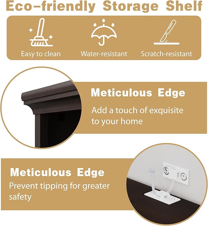 - 【Friendly Material & High Quality】Crafted with eco-friendly manufactured wood, we care about your health. Each shelf unit can hold up to 60lbs. The board surface is waterproof and smooth texture,you can use it for a longer time.