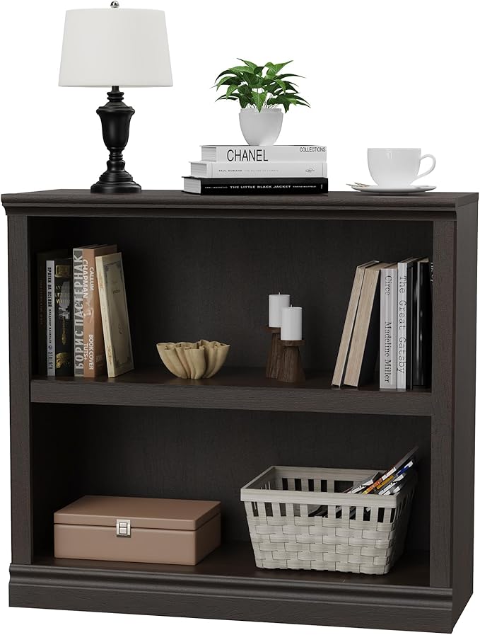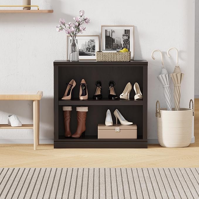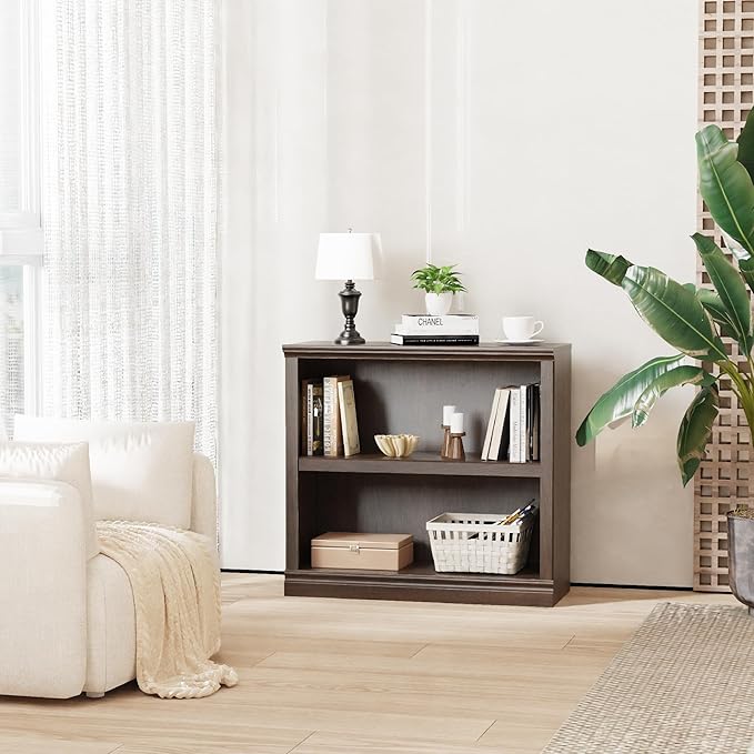 blini 2-Shelf Bookcase Wooden Bookshelves 33in Wide Floor Standing Display Storage Shelves Oak Bookcase for Home Office, Living Room, Bed Room