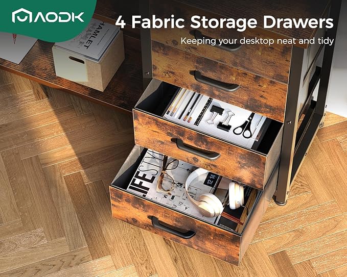 - 【Super Large Storage Space】 The AODK L-shaped desk provides 1 monitor stand, 1 UPC stand, 2 open shelfs and 4 Tier of drawers, which gives you super plenty of under-desk storage space to help you store your books, work files and small office stuffs, make your work and study more efficient. The height adjustable ergonomic monitor stand engineered to reduce back and neck stress by promoting a better sitting posture.