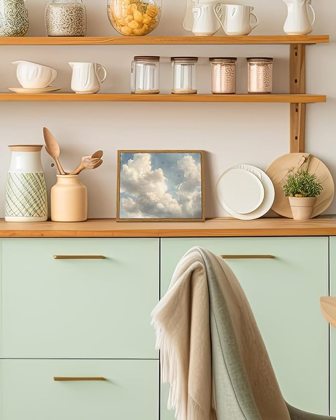 InSimSea Framed Wall Art for Living Room Cloud Canvas Wall Decor Bedroom Cloudy Artwork Retro Oil Paintings Pictures Prints Gallery Boho Vintage Cloudscape Soaring Birds Farmhouse Decor Office 8x10In