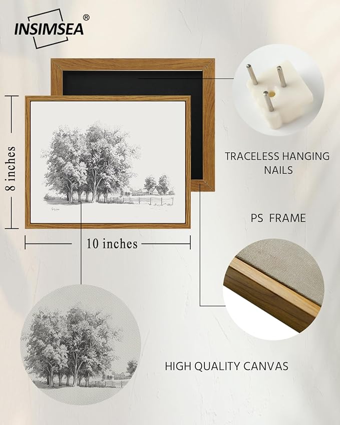InSimSea Framed Wall Art for Living Room Vintage Tree Canvas Art Black and White Sketch Botanical Wall Decor Bedroom Artwork Farmhouse Painting Pictures Countryside Prints Rustic Gallery Office 8x10In