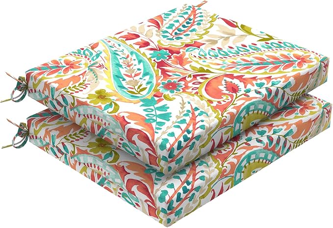 Set of 2 Outdoor Square Chair Cushions 18.5"x16"x2" for Patio, Water Resistant Patio Dining Seat Pads Replacement for Kitchen Garden and Outdoor Furniture Decoration - Pretty Paisley