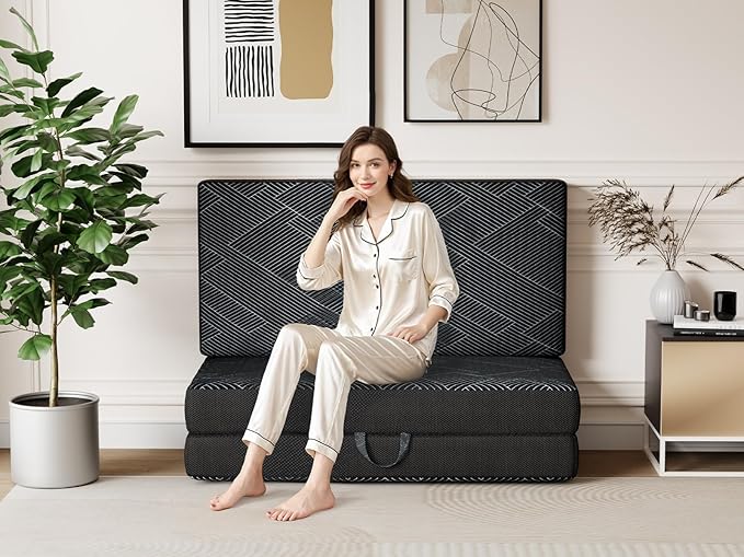 - Versatile Foldable Mattress: The Vamcheer Folding Mattress features a portable tri-fold, double-layer foam construction, knit breathable fabric and non-slip bottom design. It can be easily unfolded for use as a comfortable mattress or as a sofa. It can be used in a variety of situations including guest, camping travel or on the floor