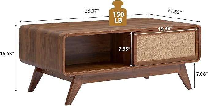 - Ample Storage Space: 39.37" L x 21.65" W x 16.53" H. This rectangle coffee table features a spacious concealed compartment accessed through a smooth-sliding natural linen fabric door. Easily store remotes, magazines, throws, games, or office supplies to keep your living room or home office organized and clutter-free. The durable linen door adds stylish farmhouse texture while hiding contents.