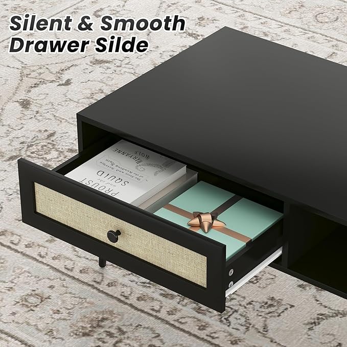 - Ample Storage: With a rattan drawer and an open space, this coffee table can provide convenient storage to keep your space organized. Store small items out of sight or use the open shelves to display your favorite decor pieces.