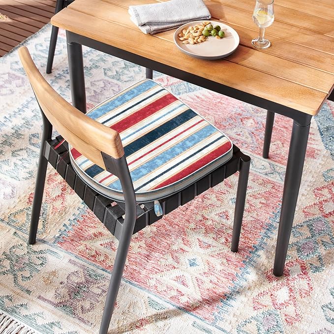 Set of 4 Outdoor Chair Cushions 19"x19"x2",Water Repellent Dining Seat Cushion with Ties and Removable Covers, Chair Cushions for Indoor and Patio Furniture, Stripe Red Blue