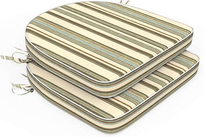 Set of 2 Outdoor Chair Cushions 19"x19"x2",Water Repellent Dining Seat Cushion with Ties and Removable Covers, Chair Cushions for Indoor and Patio Furniture, Stripe Onyx