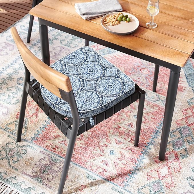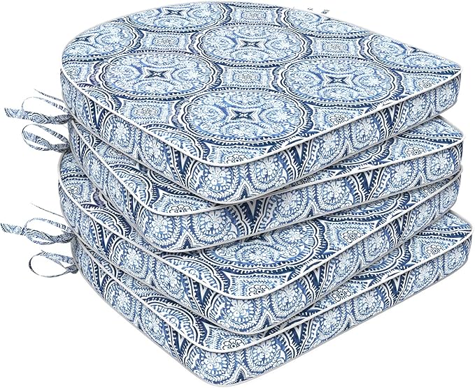 Set of 4 Outdoor Chair Cushions 19"x19"x2",Water Repellent Dining Seat Cushion with Ties and Removable Covers, Chair Cushions for Indoor and Patio Furniture, Medallion Blue