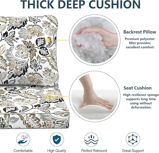 - 【PACKAGE】 - The Deep Cushions set includes 1 seat cushion measuring 24” W x 24” D x 4” T and 1 back cushion measuring 24” W x 20” H. We recommend measuring the dimensions of your furniture's seating area prior to purchase. Please note: The seat cushions are vacuum compressed; allow a period of 48 hours for them to expand to their final size as specified in the description