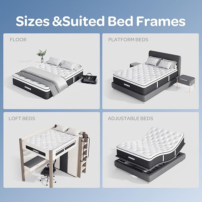 OhGeni 10 Inch Cooling Queen Size Mattress, Hybrid Gel-Infused Memory Foam Bed Mattresses in a Box, Medium Feel Cool Top Fabric, Individual Pocket Innerspring, 3-Zone Design & Reinforced Edge Support