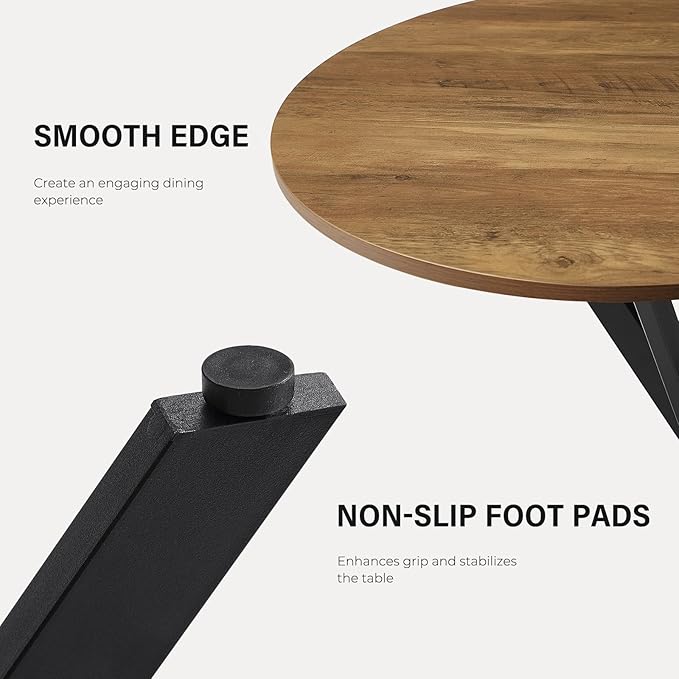 - 【Contemporary Simple Design】With circular forms, our small round dining table tends to break through straight lines, is composed of a brown wood grain tabletop and an X-shaped frame, easily complements different room styles