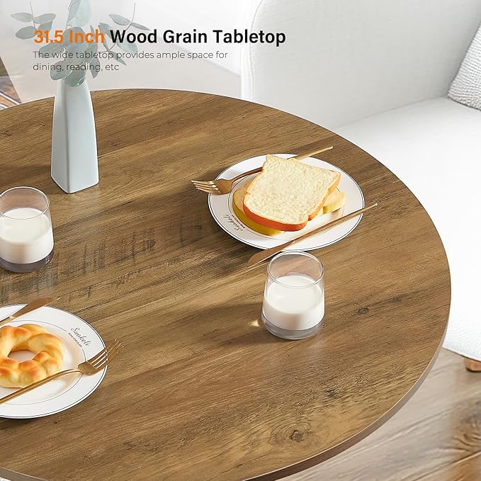 Unovivy 31.5" Small Round Dining Table for 2-4, Space Saving Circle Kitchen Dinner Table, Industrial Mid Century Modern Dining Room Desk for Kitchen, Apartment, Light Brown