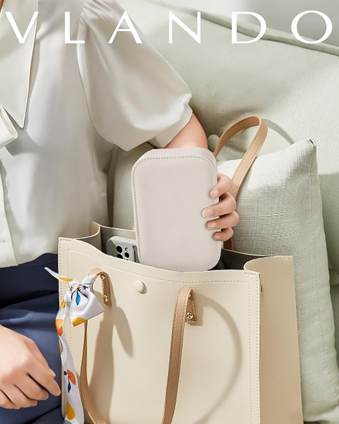 Vlando Travel Jewelry Case for Women Girls Mothers, PU Leather Small Mini Jewelry Box for Rings, Necklaces, Bracelets, Earring Holder Organizer Storage for Travel Accessories, Bridesmaid Gifts - Beige