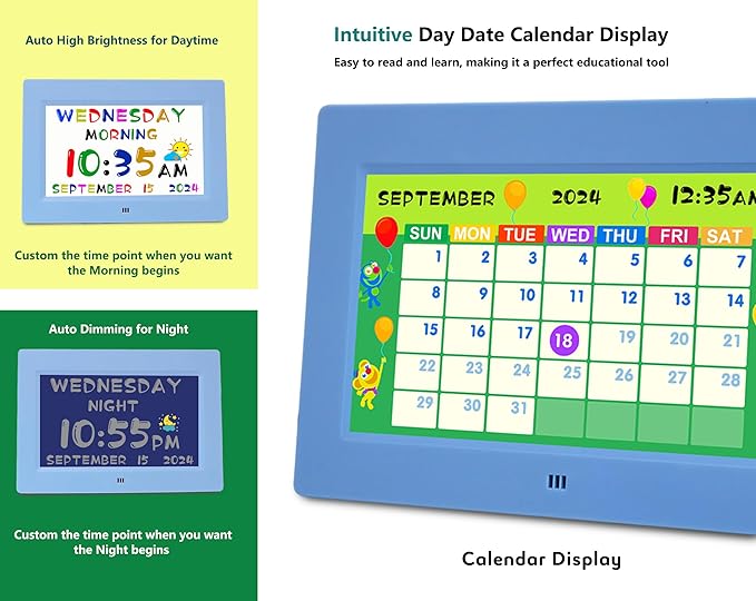 - 𝟮𝟬𝟮𝟱 𝗕𝗘𝗦𝗧 𝗜𝗻𝘁𝗲𝗿𝗮𝗰𝘁𝗶𝘃𝗲 𝗧𝗶𝗺𝗲-𝗟𝗲𝗮𝗿𝗻𝗶𝗻𝗴 𝗖𝗹𝗼𝗰𝗸: Based on years of customers requests and feedbacks, we have redesigned the colorful kids digital alarm clock with voice-speaking time and hourly announcements, learning calendar and analog clock, 24 talking alarms and custom reminders, your kids or teenagers can easily grasp the concept of time and date while enjoying a playful interaction