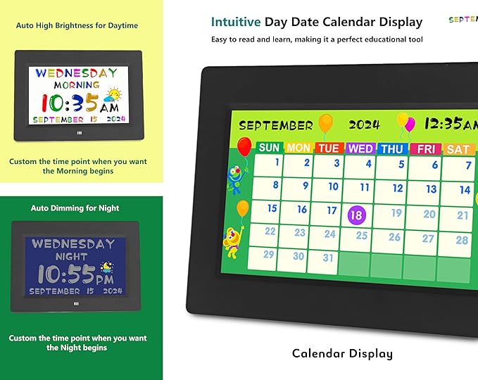 - 𝗛𝗔𝗦𝗦𝗟𝗘-𝗙𝗥𝗘𝗘 𝗧𝗜𝗠𝗘 𝗠𝗔𝗡𝗔𝗚𝗘𝗠𝗘𝗡𝗧: Thanks to the auto DST adjustment, parents need not worry! The clock automatically updates for daylight saving time, ensuring accuracy without any manual changes.