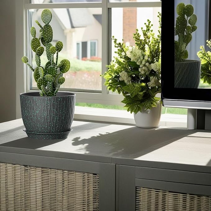 - Multiple Sizes:this plastic pot set includes pots of different sizes (12-inch, 10-inch and 9-inch diameter pots), you can plant a variety of plants or flowers at once, such as succulents, cacti, herbs, ZZ plants, aloe vera, peace lily, as you like, to create a beautiful garden for you