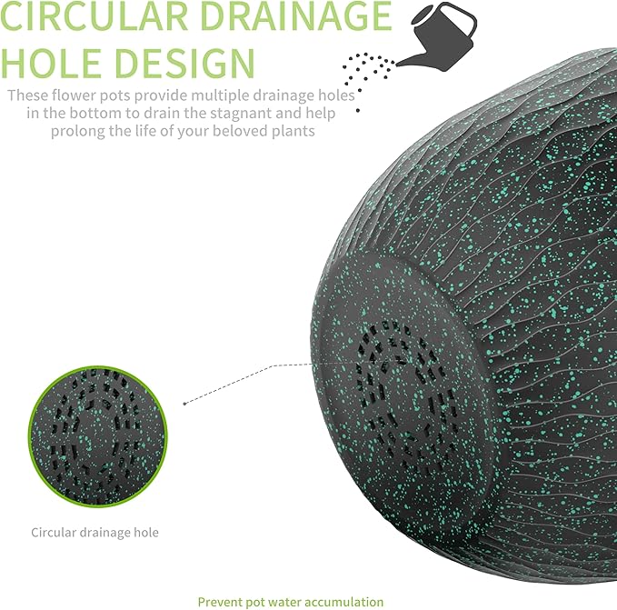 - with Drainage Holes and Tray:Each flower pot has a carefully designed fan-shaped drainage hole at the bottom to ensure the flow of excess water in the pot. And comes with a matching tray to collect excess water, keeping the surface clean and dry
