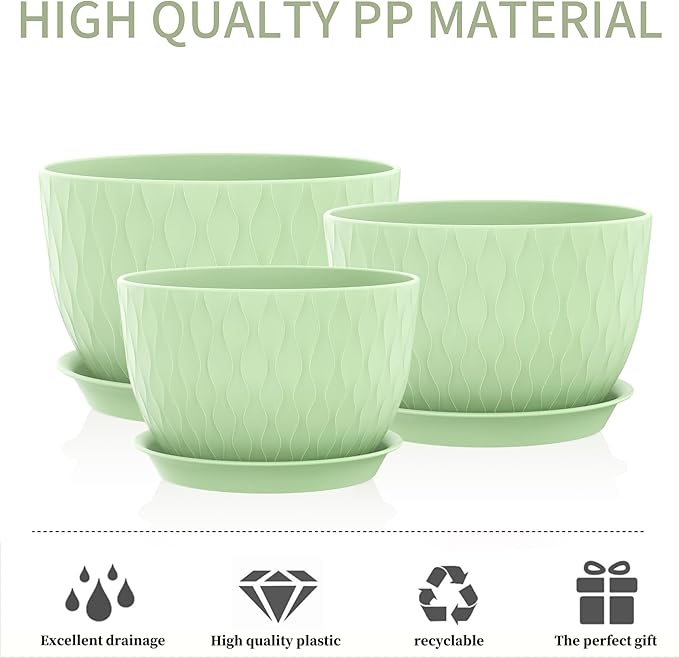 - Multiple sizes:this plastic pot set includes pots of different sizes (12-inch, 10-inch and 9-inch diameter pots), you can plant a variety of plants or flowers at once, such as succulents, cacti, herbs, ZZ plants, aloe vera, peace lily, as you like, to create a beautiful garden for you