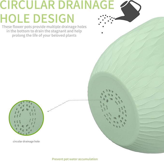 - With drainage holes and tray:Each flower pot has a carefully designed fan-shaped drainage hole at the bottom to ensure the flow of excess water in the pot. And comes with a matching tray to collect excess water, keeping the surface clean and dry