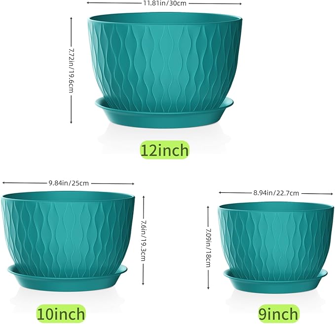 - Multiple Sizes:this plastic pot set includes pots of different sizes (12-inch, 10-inch and 9-inch diameter pots), you can plant a variety of plants or flowers at once, such as succulents, cacti, herbs, ZZ plants, aloe vera, peace lily, as you like, to create a beautiful garden for you